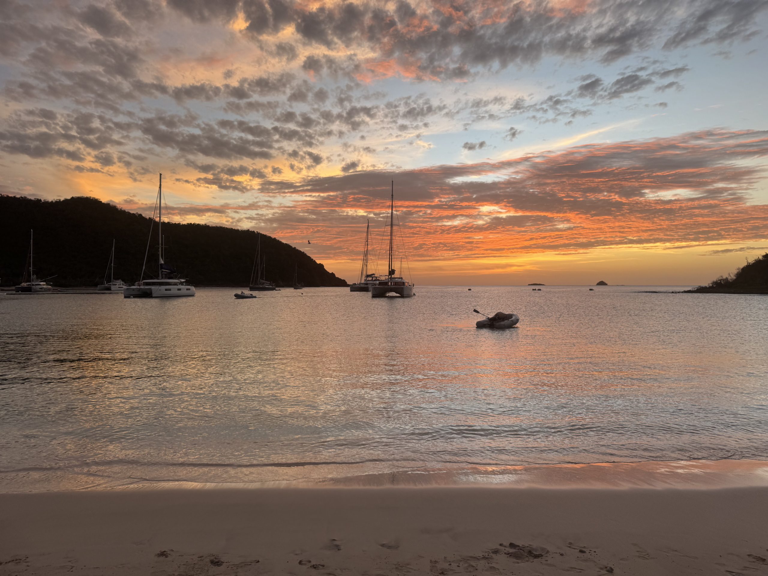 On largue les amarres en fin de matinée, direction l’île de Silhouette. Le vent est doux, la navigation facile. À l’arrivée, on découvre une île sauvage, sans voiture, sans port, accessible uniquement en bateau. On a l’impression d’avoir mis les pieds dans un décor de cinéma. On mouille dans une crique protégée, seuls au monde. Premier apéro sur le pont, premières baignades au coucher du soleil.