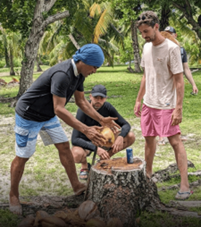 Réveil au son des oiseaux tropicaux. Snorkeling à couper le souffle, puis navigation jusqu’à Grande Sœur, une petite île privée mais accessible pour la journée. On négocie quelques poissons à des pêcheurs locaux, feu sur la plage autorisé : barbecue au bord de l’eau.